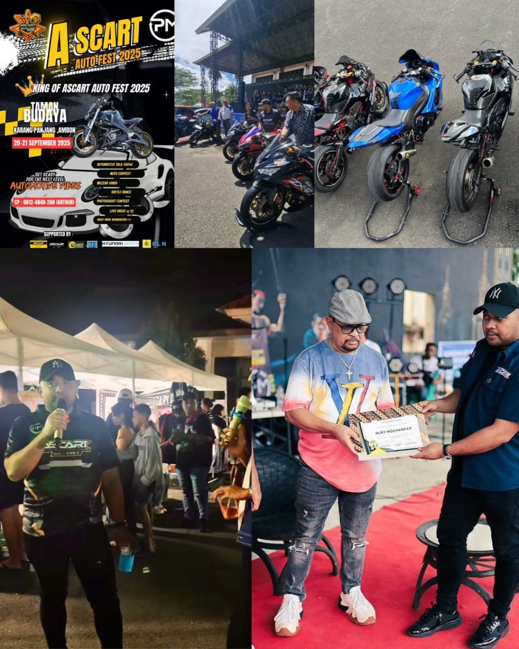 “Atas nama Ascart, saya mengucapkan terima kasih kepada Anggota DPRD Maluku Johan Lewerissa yang menutup kegiatan ini, serta seluruh sponsor, peserta, UMKM, dan pihak yang telah mensukseskan acara. Salam otomotif,” tutup Patrick.