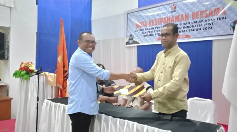 Tual, SentralNusantara.com – Badan Pengawas Pemilu (Bawaslu) Kota Tual dan Persatuan Wartawan Indonesia (PWI) Kota Tual resmi menjalin kerja sama dalam mengawal proses Pemilu (Pilkada) 2024.