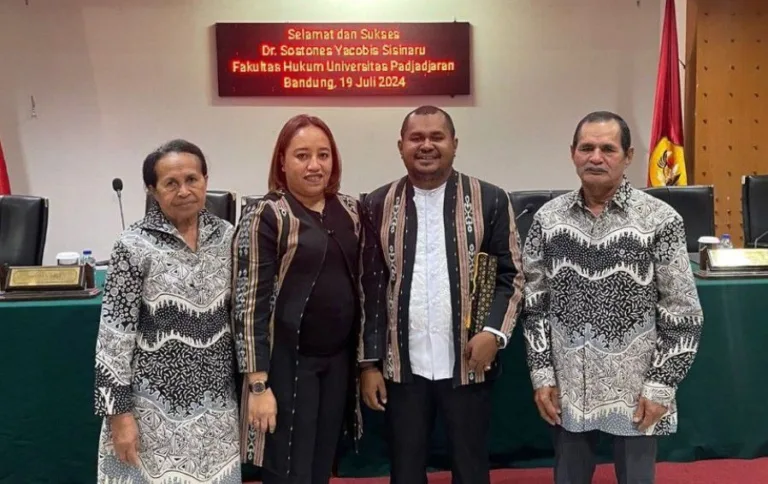 Ambon, SentralNusantara.com – Hari penuh kebanggaan dan syukur menyelimuti hati Sostones Sisinaru ketika Dr. Sigit Suseno, SH. M. Hum mengetuk palu pengesahan yang menetapkan dirinya sebagai doktor di bidang hukum. Disertasi berjudul “Prosedur Pembentukan Peraturan Daerah Perspektif Sosiologis di Papua dan Maluku” membawa Sostones meraih gelar doktor dari Universitas Padjajaran Bandung.