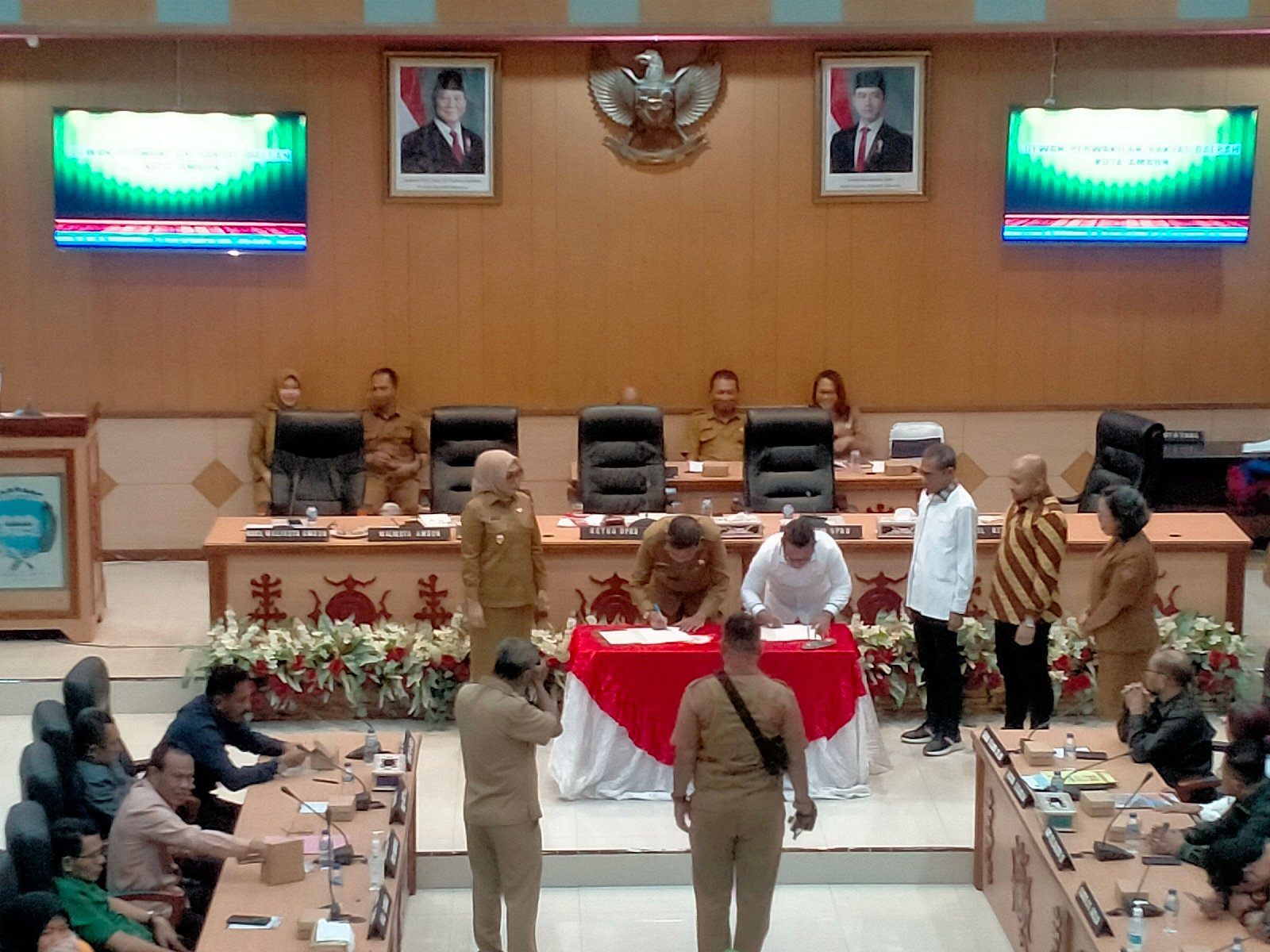 Wali Kota Ambon, Bodewin Wattimena, dalam sambutannya menyampaikan bahwa pengesahan ketiga regulasi tersebut menjadi langkah penting dalam memperkuat sistem pelayanan publik dan penataan sosial di Kota Ambon.